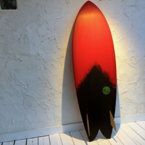 海外のDEUSからシェイプを依頼されるほど、世界的に知名度のあるボードビルダーであり、グラッシングスキルとカラーやデザインのセンスにも抜群の定評がある。デーン・ピーターソンやベリンダ・バグスといった超有名どころで人気実力共に世界トップクラスのサーファー達のボードもShapeしてきているtappy。世界基準のボードビルドと卓越したセンスで、彼のボードは国内外にファンが多い。日本を代表するボードビルダーである。